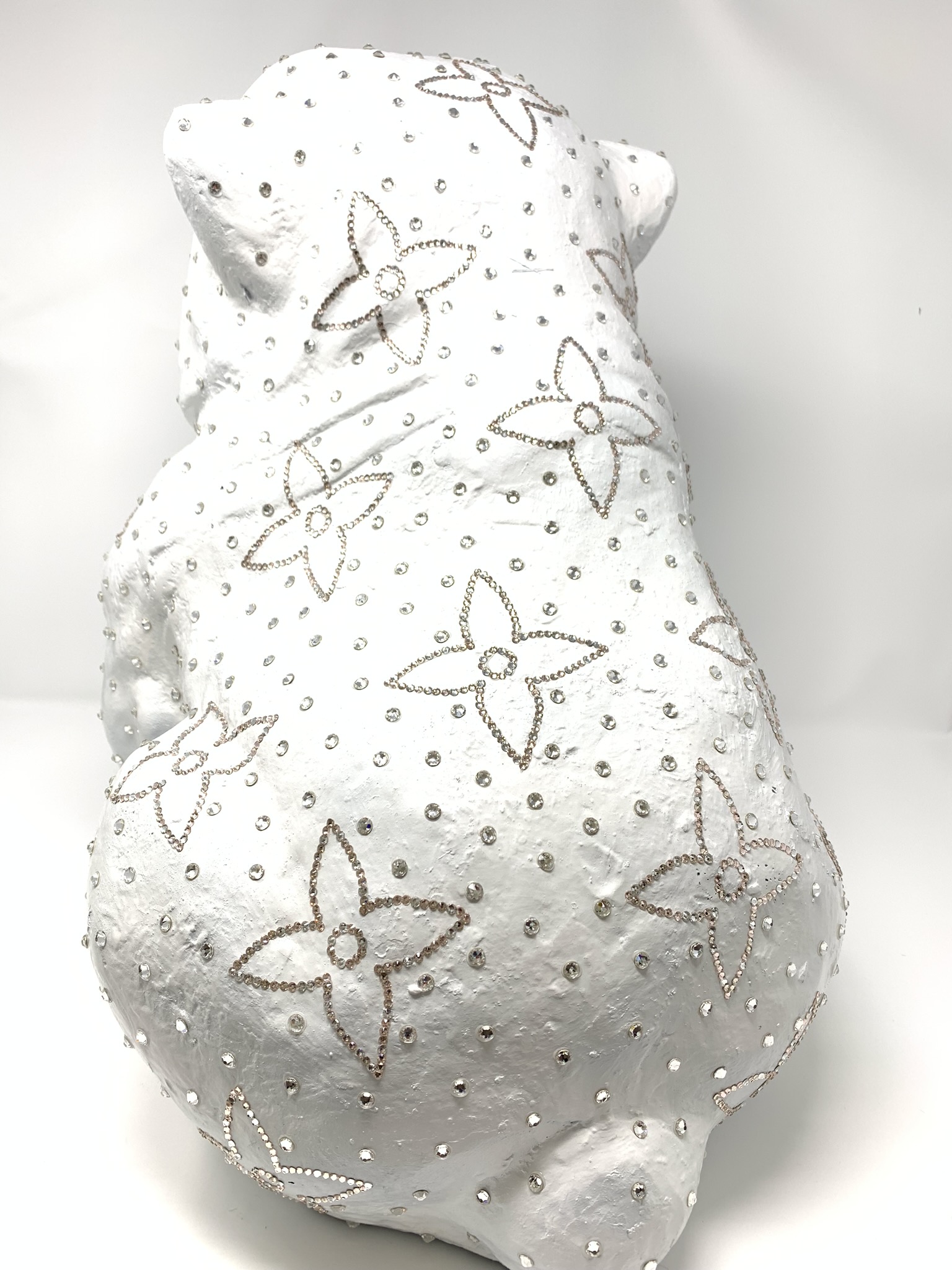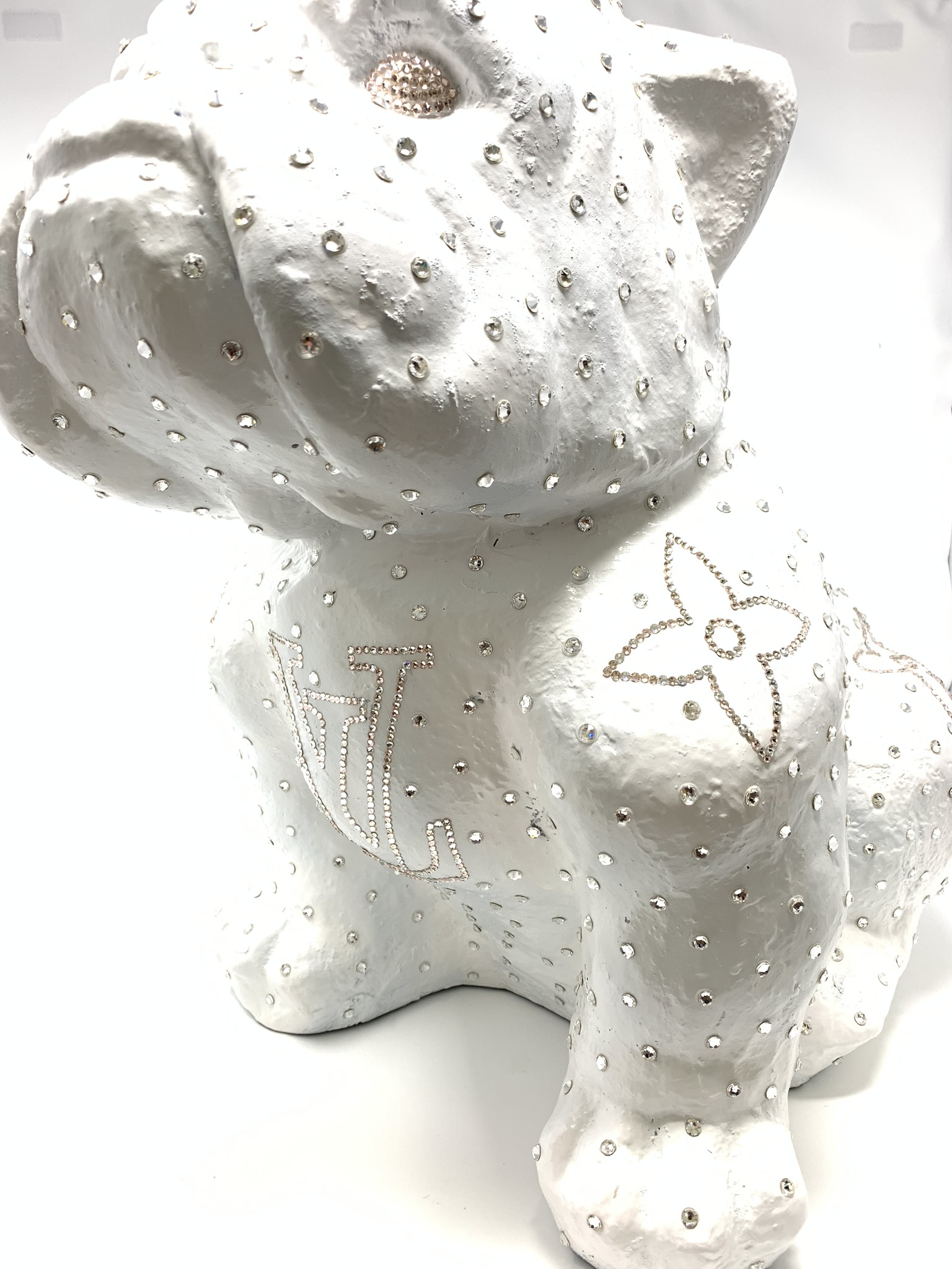 Wer kann diesem Vierbeiner schon widerstehen? Liebevoll gestaltete Bulldogge, lackiert und mit original Swarovski Elementen verziert. Die Bulldogge ist mit vielen exakten Details gestaltet. Je nach Lichteinfall funkeln die Swarovski Elemente wie Diamanten. Pflegeleichter Wachhund und Empfangskomitee für Gäste im Flur oder am Empfangstresen im Büro.